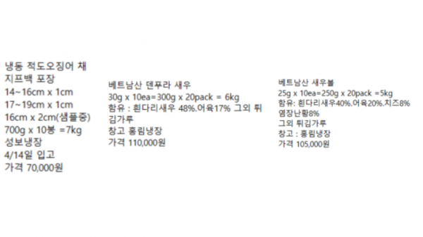 Korean Seafood > Price Table